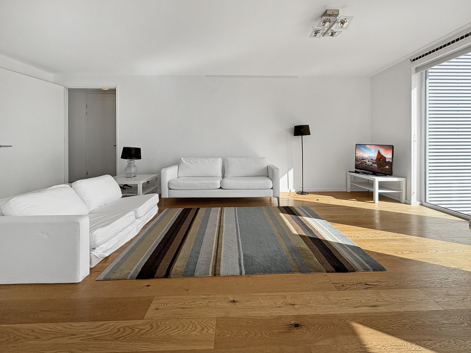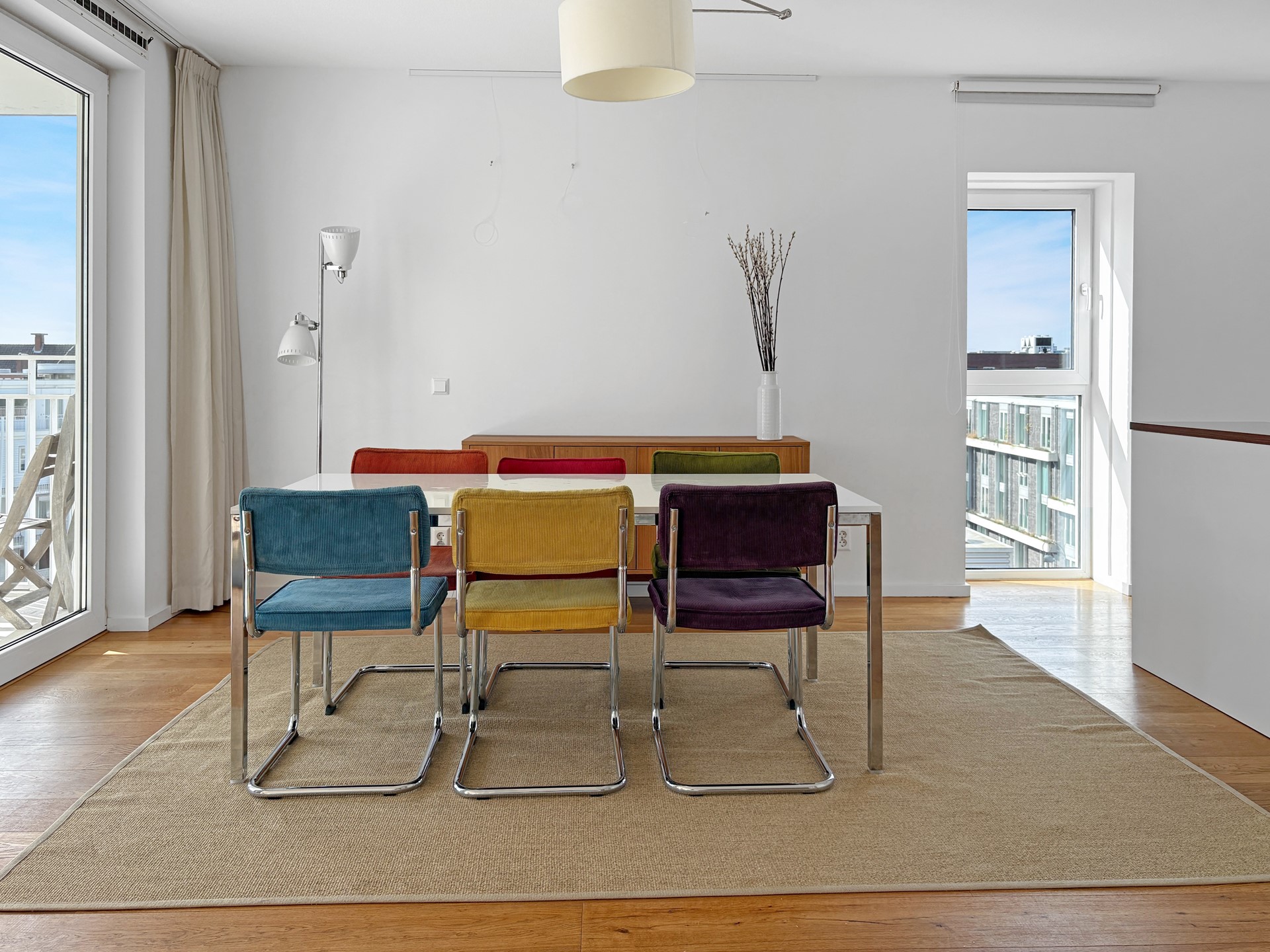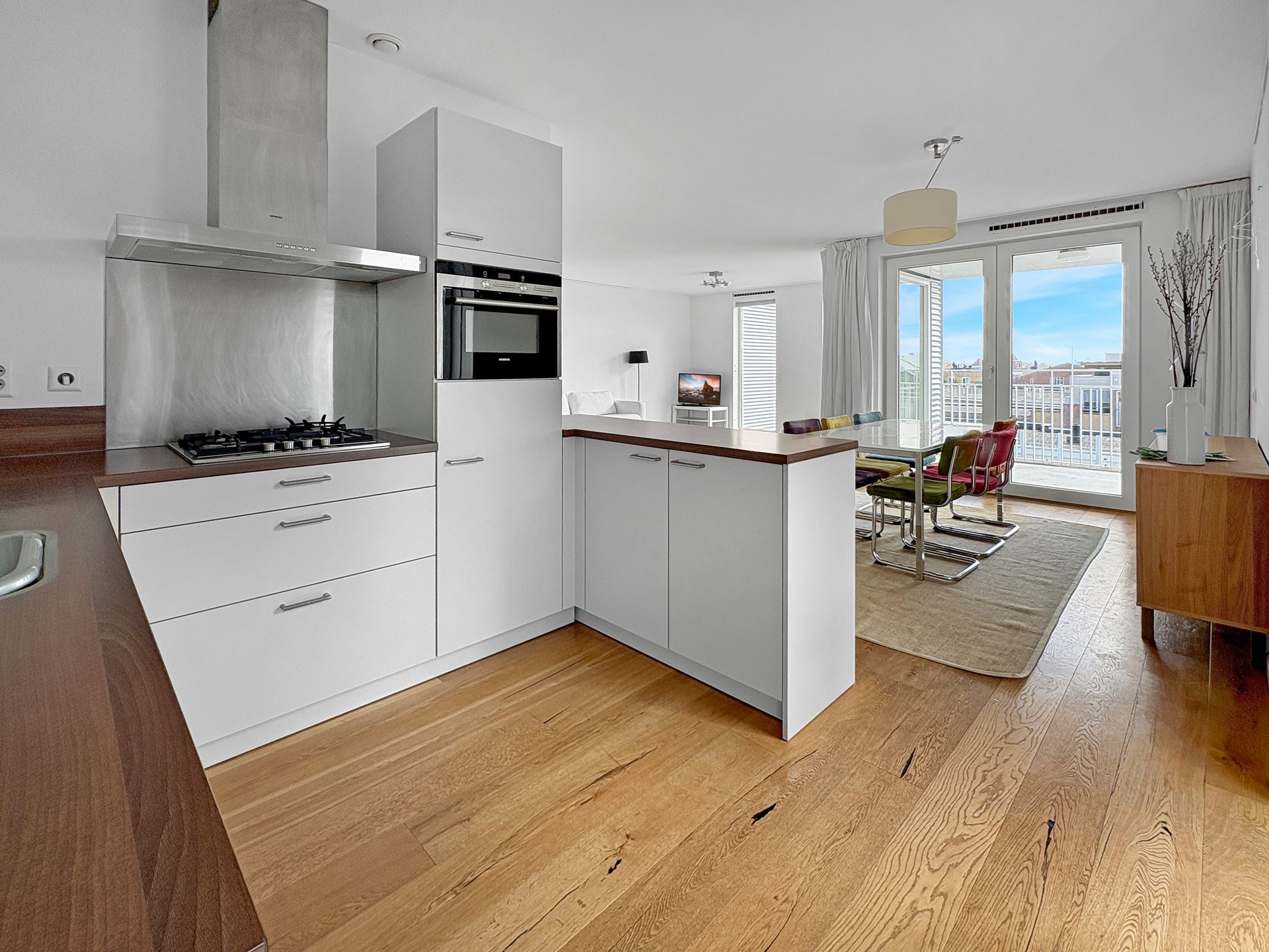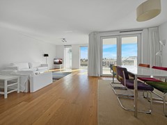 Vanuit de woonkamer heeft u toegang tot het terras, waar u kunt genieten van een prachtig uitzicht over Amsterdam.