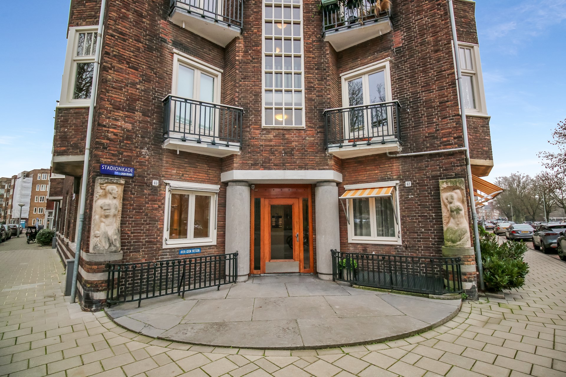 Entrance on the ground floor, with a hallway providing access to all rooms, including the open-plan living room with a modernized open-plan kitchen featuring a built-in dishwasher and oven, and with many windows and unobstructed views of Stadionkade. There is a spacious master bedroom and three children's bedrooms, some with built-in wardrobes. The completely new bathroom features a beautiful walk-in shower and a stylish vanity unit. There is a separate toilet. The spacious, long hallway provides access to all rooms. The apartment offers ample storage space, including several built-in wardrobes and a separate storage room in the basement. The courtyard garden offers ample space for outdoor dining, accessible from the rear bedrooms.